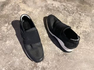 Scarpe da ginnastica nere con suola in gomma. - Suola con battistrada. - Design con inserti circolari sulla suola.