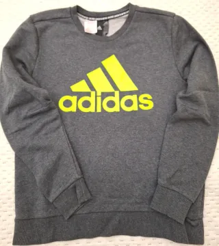Felpa Adidas grigia con logo. - Logo Adidas a contrasto giallo fluo. - Maniche lunghe. - Scollo rotondo.