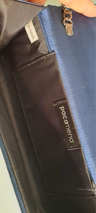 Elegante pochette blu, perfetta per ogni occasione. - Materiale in raso. - Catena metallica inclusa. Potrebbe esserci qualche segno di conservazione