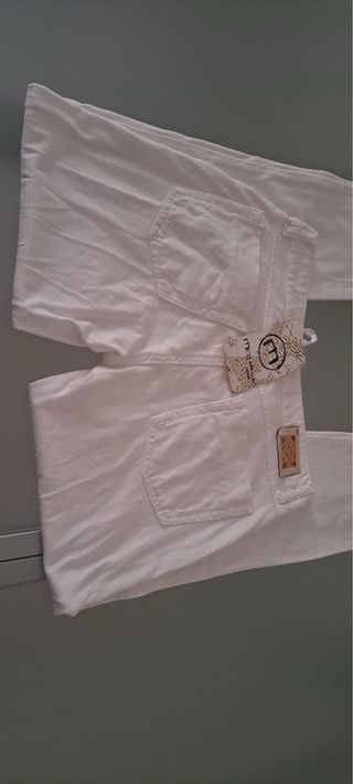 Pantaloni eleganti di colore bianco. - Tessuto confortevole. - Design classico. Taglia 28 ci potrebbe essere qualche segno di conservazione