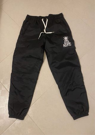 Pantaloni sportivi neri con logo Nike. - Tessuto tecnico antipioggia e antivento. - Coulisse in vita per una vestibilità regolabile. - Tasche laterali con zip. - Fondo gamba elasticizzato.