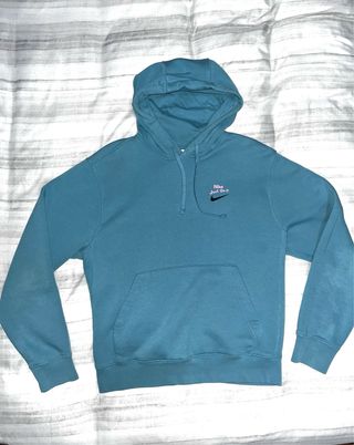 Felpa con cappuccio Nike di colore azzurro. - Logo Nike e scritta Just Do It sul petto. - Tasca a marsupio frontale. - Cappuccio con laccetti.