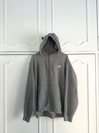 Vendo felpa Nike con zip. È una felpa grigia melange, in buone condizioni. - Con cappuccio - Chiusura zip - Logo Nike stampato