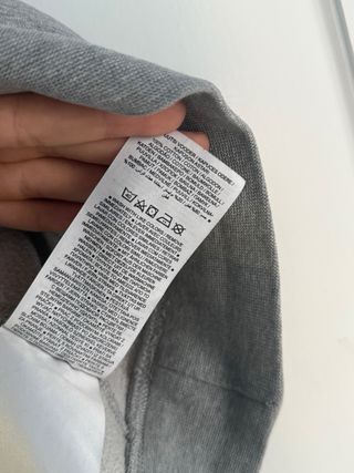 Felpa leggera con cappuccio e zip. Vestibilità regolare. Presenta un piccolo foro sul retro della manica sinistra ed uno sul cappuccio