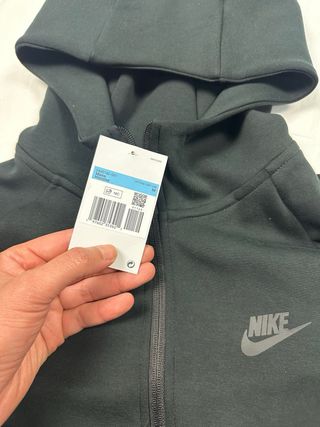 Felpa con cappuccio Nike Tech. Con piccole macchioline - Zip frontale. - Tasche a marsupio. - Dettagli a contrasto sulle maniche.
