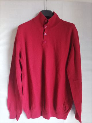 Caldo e confortevole maglione di un bel colore rosso acceso, ideale per dare un tocco di colore all'inverno. Il design presenta un collo alto con chiusura a tre bottoni, che permette di portarlo sia chiuso che leggermente aperto. Spalle 44 Lunghezza 69 S01-33