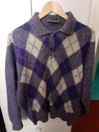 Macchiato Maglione da uomo con classico motivo a rombi. - Fantasia argyle. - Scollo a polo con bottoni. - Tessuto morbido e caldo.