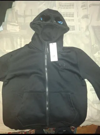 Felpa con cappuccio e zip del marchio CP Company. Nuova, mai indossata. - Logo CP Company ricamato sul petto. - Cappuccio con iconici occhiali integrati. - Tasca a marsupio frontale.