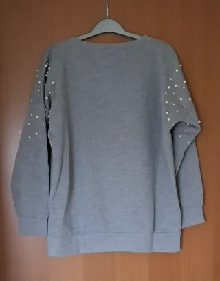 Felpa girocollo con dettaglio di perle sulle maniche e scritta NYC sul davanti. - Maniche lunghe. - Polsini e fondo a costine. - Applicazione di perle decorative.