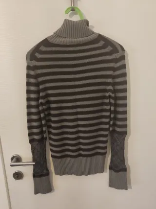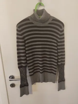 Maglioncino a collo alto con fantasia a righe orizzontali. Marca: Stefanel. Taglia: M. Città: Bologna. - Maniche lunghe con inserti in pizzo. - Collo e fondo a costine.