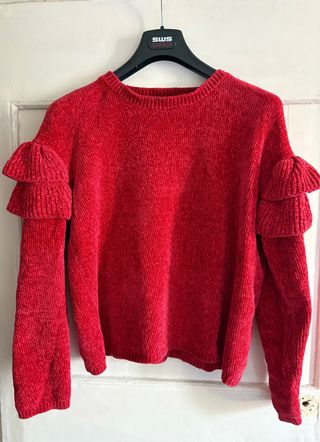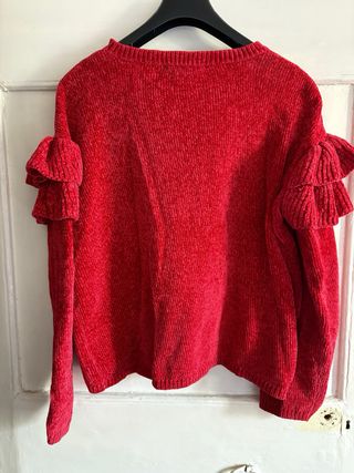 Maglione in maglia con un design accattivante. - Maniche con volant a più strati. - Tessuto morbido e confortevole.