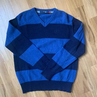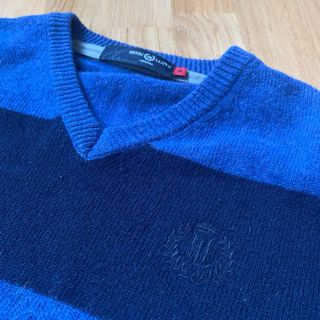 Usato poco, ottime condizioni, solo qualche piccolo pallino della lana sui bordi elastici, caldo e morbido Taglia M colletto a V Strisce blu scuro e blu elettrico 80% lana 20% poliammide