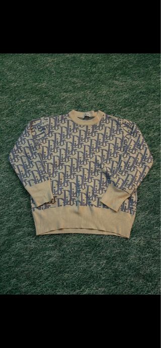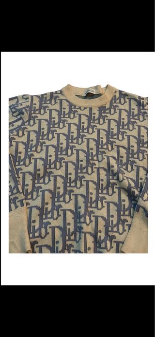 Maglione Dior con fantasia monogram. - Fantasia monogram Dior. - Colore beige e blu. In ottime condizioni e spedizione rapida