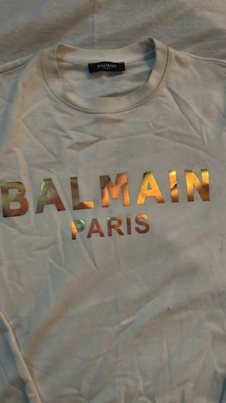 Felpa girocollo Balmain Paris con logo frontale. - Logo Balmain Paris stampato. - Design multicolor su base bianca.