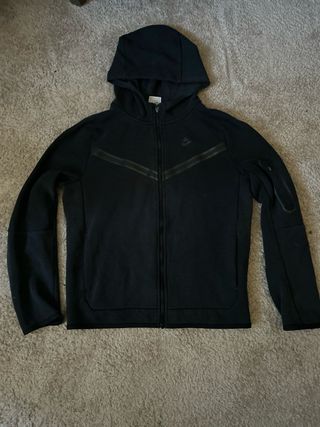 Felpa Nike Tech nera con zip intera e cappuccio. Presenta il caratteristico design a V sul petto e tasche con zip. Taglia:XL(158-170cm)