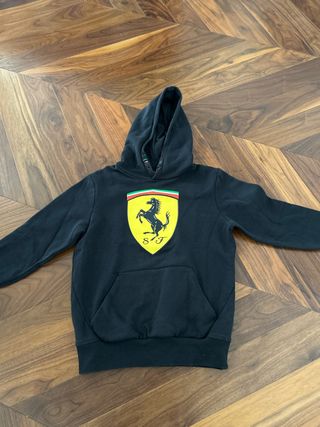 Felpa con cappuccio e logo Ferrari. - Logo del Cavallino Rampante sul davanti. - Tasca a marsupio.