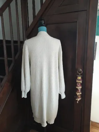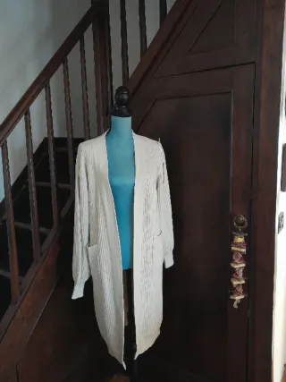 Cardigan lungo in maglia a coste. Un capo versatile e comodo. - Lunghezza midi. - Tasche frontali applicate. - Maniche lunghe a blusa - Taglia unica - Tessuto morbissimo di viscosa elastene - Senza bottoni - Fabbrica 3