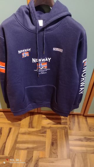 Felpa con cappuccio stile casual, perfetta per un look informale. - Design con stampa Norway e bandiera norvegese. - Dettagli a contrasto sulle maniche. - Tasca frontale a marsupio. Taglia XL (52)