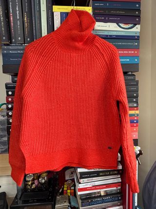 Morbido maglione Replay con collo alto. Presenta qualche pallino dovuto all'uso. Il colore dal vivo è più aranciato rispetto alle foto - Tessuto a coste. - Orlo e polsini a costine. - Logo discreto sul fondo.