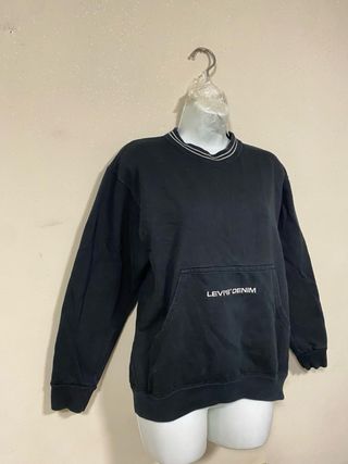 🔥Felpa unisex vintage girocollo nera Levi's in cotone con tascone a marsupio sul davanti, taglia S🔥 •mai usata, nuova -Felpa girocollo Levi's in cotone, perfetta per un look casual. - Logo Levi's Denim stampato sul davanti. - Tasca a marsupio. - Collo, polsini e fondo a costine.