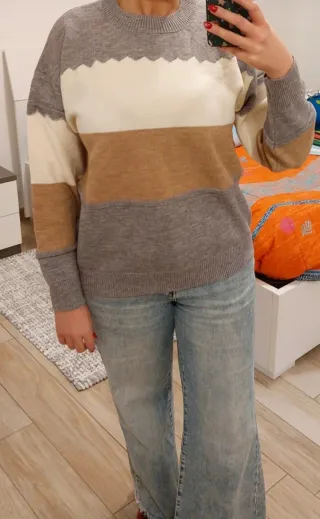 Maglione donna oversize a righe Nuovo con etichetta 🏷 compreso di sacchetta in plastica richiudibile con cerniera. Taglia S. Misure: lunghezza maglione 64 cm e da ascella a ascella 56 cm. Shein
