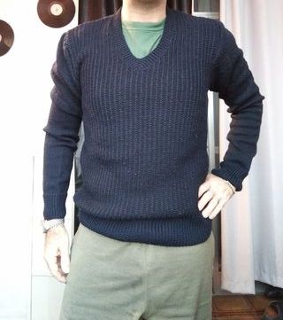 Pullover Rifo Maglione scollo a V Lana & Cashmere Blu navy size M ______________ Pullover Rifo Costante e' un maglione scollo a v da uomo realizzato in un mix di lana e cashmere , con Punto maglia inglese che dona struttura e profondità alla texture Manica lunga raglan con rifiniture in coste su collo e polsini Calda e confortevole _____________________ Misure: spalla spalla: 40cm manica: 64 cm ascella ascella: 46 cm lunghezza tot: 66 cm ______________________ Maglione Rifo con scollo a V, realizzato in un misto lana e cashmere. Un capo versatile e confortevole. - Tessuto morbido al tatto. - Design classico a costine.