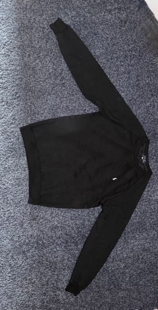 Maglione Moncler di colore nero con logo. Non è proprio una xs è un po’ più grande - Logo Moncler sul petto. - Patch Moncler sulla manica sinistra.