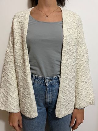 Cardigan Stradivarius in maglia color panna, modello kimono. - Design aperto sul davanti. - Maniche ampie. - Texture a trecce.