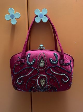 Bellissima mini borsa a tracolla, perfetta per uscire la sera. - Tracolla a catena dorata. - Chiusura con patta. - Cuciture a rombi.