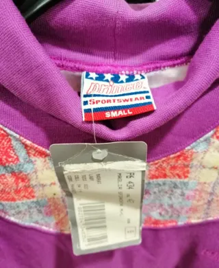 Felpa vintage Prince Sportswear con un diseño único. - Parte superior con estampado geométrico. - Cuello alto. - Logo bordado en la parte delantera.