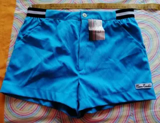 Boxer vintage Pierre Cardin. - Tessuto poliestere - Vita elasticizzata con banda a righe bianche e nere. - Logo Pierre Cardin sul fondo.