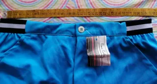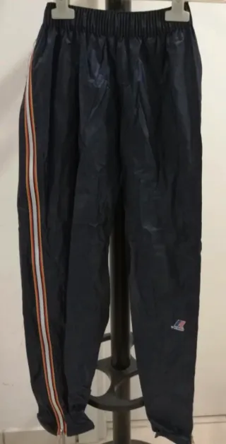 Pantaloni vintage Fred Perry in colore blu. - Tessuto impermeabile. - Dettagli a righe bianche sui lati.