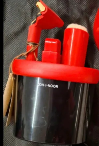 Elegante set da barba da viaggio Koh-i-Noor, perfetto per chi è sempre in movimento. Il design combina il nero del contenitore con dettagli rossi vivaci. - Contenitore principale nero. - Componenti rossi. - Marchio Koh-i-Noor visibile. - Rasoio funzionante con pilastri non inclusa stilo AA - pennello da barba retrattile per preservare le setole - spazzolino da denti richiudibile