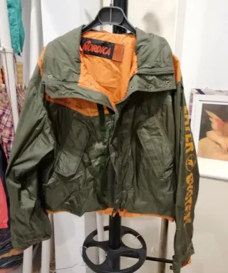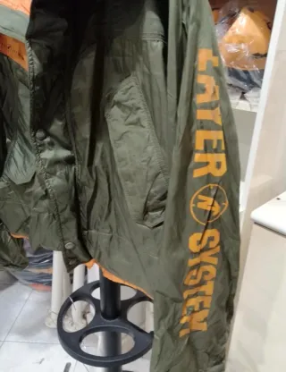Giacca a vento vintage con un design unico. - Colore verde con dettagli arancioni. - Logo Nordika sul colletto. - Scritta WATER SYSTEM sulla manica. Macchia sulla spalla, come da foto, si può smacchiare prima di indossare