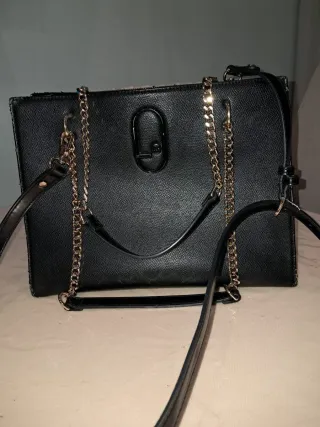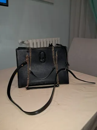 Borsa Liu Jo in pelle nera, con dettagli dorati. - Manici in pelle. - Tracolla in catena dorata. - Chiusura con zip. - Logo frontale.