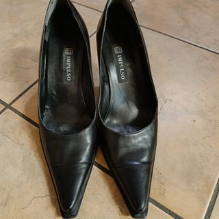 scarpa scamosciata , tinta unita color nero , interno in pelle , punta stretta e tacco a stiletto 11,5 cm , suola in cuoio . Utilizzato 2 volte. Prodotto Made in Italy