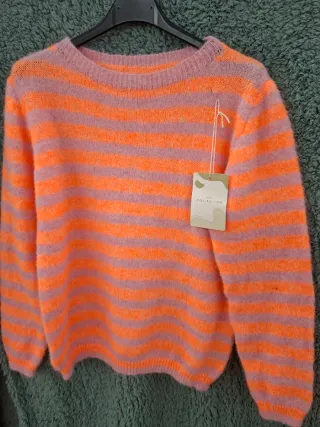 Maglione Y2K con scollo a V e righe. - Tessuto a coste verticali. - Dettaglio a righe orizzontali sul petto. - Righe verticali sulle maniche. - Stile vintage '70 - Moda Y2K acquistato nei primi anni '00