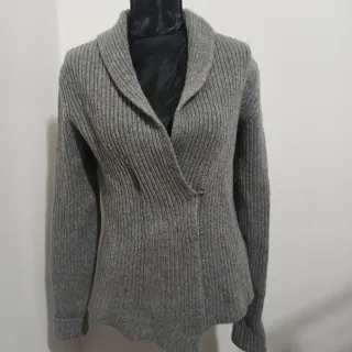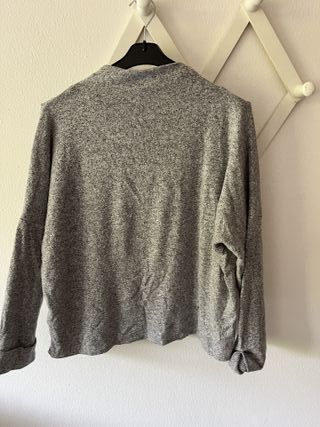 Maglioncino H&M de punto fino en color gris jaspeado. Cuello redondo y manga larga. - Tejido suave y cómodo. - Diseño versátil.