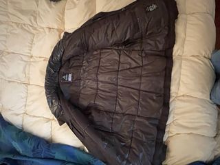 Giacca imbottita con cappuccio, perfetta per le giornate fredde. - Tessuto lucido e trapuntato. - Chiusura centrale con zip. - Tasche laterali con zip. - Patch sul braccio. - Scritta bianca piccola sul davanti ha alcune lettere leggermente staccate. - Poco indossato pari al nuovo.