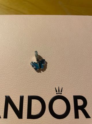 Charm Pandora a forma di farfalla, con dettagli in argento e pietre blu. - Design a farfalla. - Dettagli in argento. - Pietre blu.
