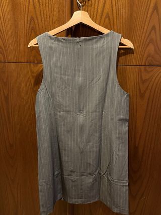 Abito senza maniche con fantasia gessata. - Scollo rotondo. - Chiusura posteriore con zip. - Tasche laterali. - Linea dritta. Indossato solo 1 volta, ma non è il mio genere.