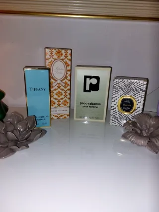 Lotto di profumi vintage, nuovi, provenienti da collezione privata. - Profumo Tiffany - Profumo Guerlain - Profumo Paco Rabanne - Profumo Madame Roschas Nuovi, colore leggermente ambrato, mai usati. Guarlain ancora con pellicola tappo. Vendita intero lotto 650€ .Possibilità vendita singolo prodotto su richiesta.