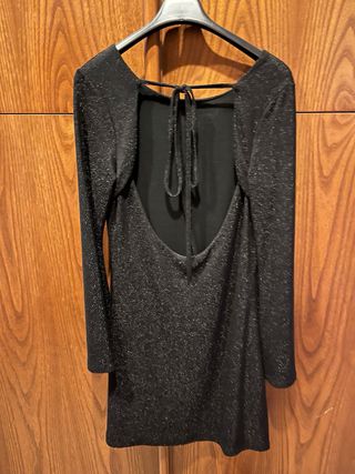 Elegante abito corto con dettagli glitter. - Tessuto scintillante. - Maniche lunghe svasate. - Scollo posteriore con laccetto. Mai utilizzato, tolto il cartellino per indossarlo, ma poi ho cambiato idea.