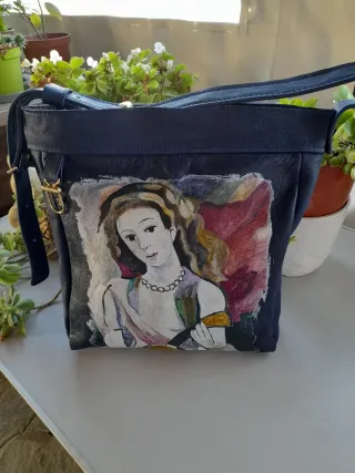 Borsa in pelle con stampa artistica di un volto femminile. - Materiale: Pelle - Dettaglio:stampa. - Tracolla regolabile
