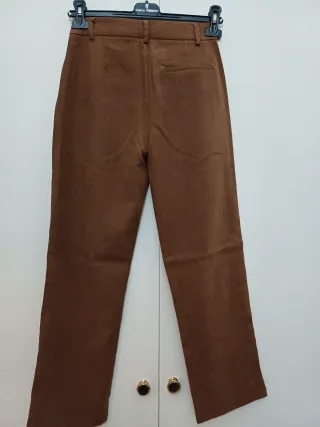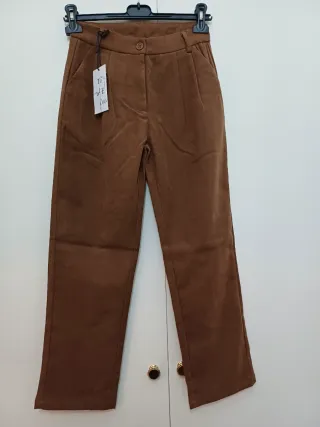 Pantaloni eleganti da ragazza in color tabacco. - Tessuto in velluto a coste. - Vita alta. - Tasche laterali. - Chiusura con bottone e zip.