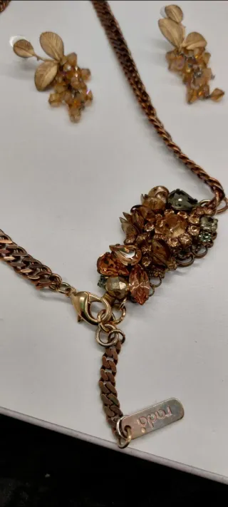 Bellissimo collier di Rada' anni 80. Gli orecchini non sono firmati - Collana rada' con pendente decorato. - Orecchini abbinati ma non di rada' - Dettagli colorati e brillanti.