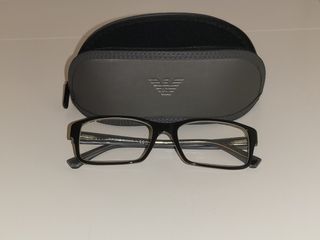 Montatura occhiali da vista Emporio Armani, esterno nero, interno grigio trasparente. Con custodia originale