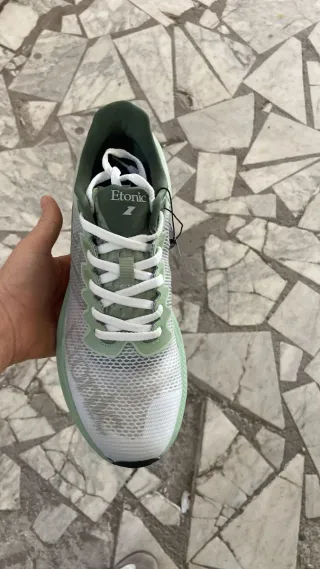 Scarpe sportive Etonic in ottime condizioni. - Design moderno con inserti verdi e bianchi. - Tomaia in mesh traspirante. - Suola in gomma per un'ottima aderenza.