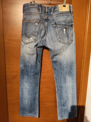 Jeans Replay modello skinny. - Vestibilità slim. - Effetto used. - Dettagli strappati.