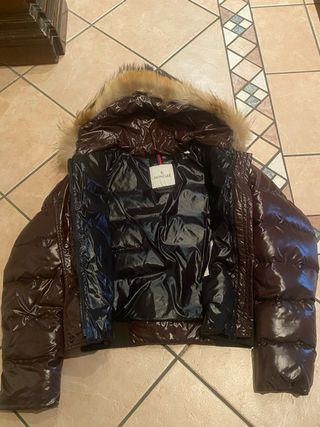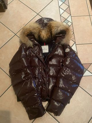 Elegante piumino Moncler con cappuccio bordato in pelliccia. - Finitura lucida. - Dettaglio logo sulla manica. - Chiusura frontale con zip e bottoni. SPEDIZIONE VELOCE NUOVO,MAI USATO